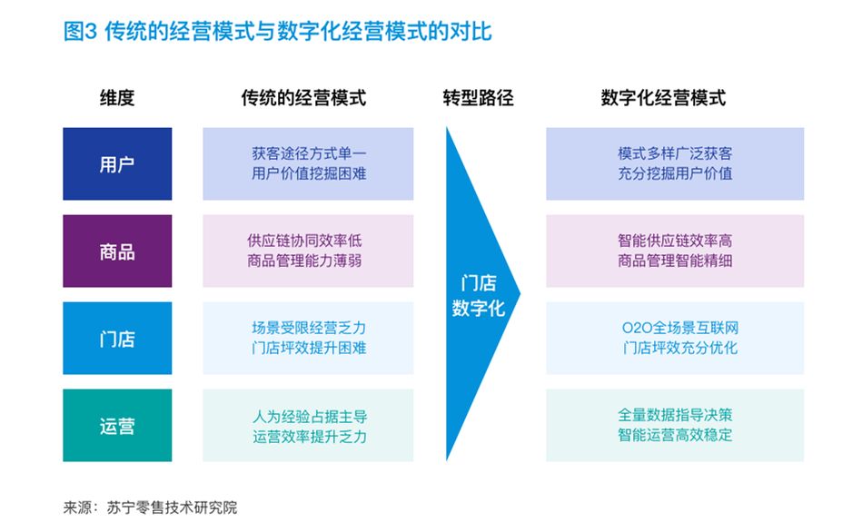 什么是门店数字化?苏宁零售技术研究院认为,门店数字化转型的本质,是经营理念的转变。