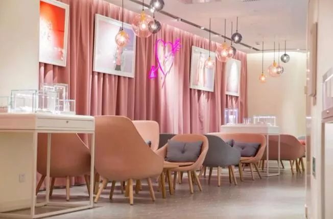 浪漫法式风格+充满少女心的粉色设计,店内粉嫩的设计充满少女心。门店粉色的窗格框住玻璃窗,镶嵌式橱窗内陈列着AGATHA当季最新配饰系列可供购买。浪漫法式的设计也收割了众多少女心!