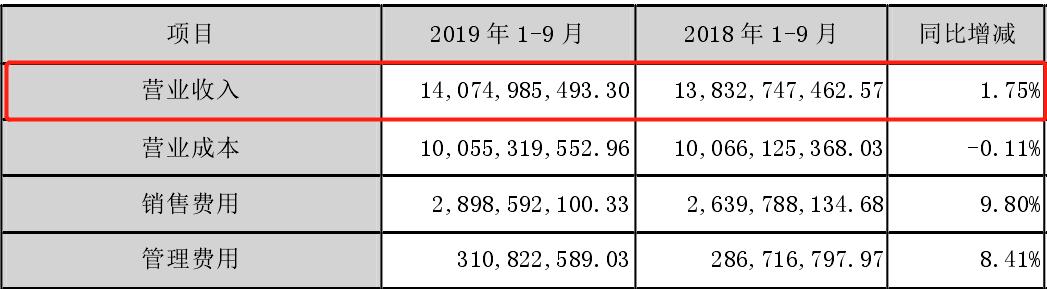2019年发布的第三季度财报也显示营业收入同比增长1.75%,持续上升。